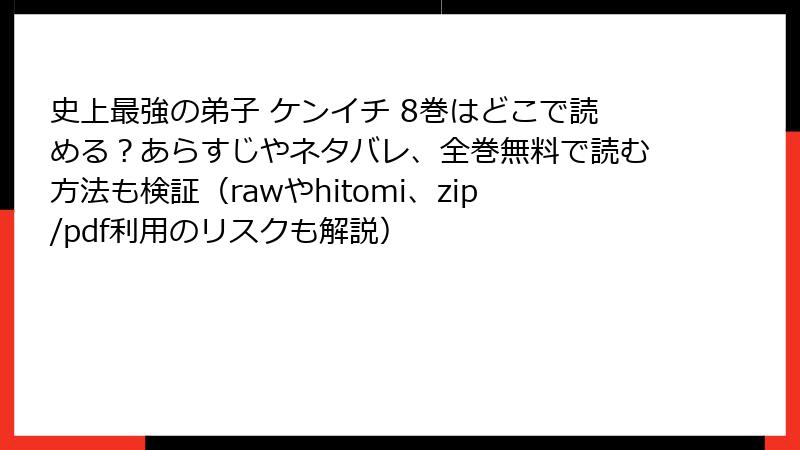こんにちは、漫画ファン必見のセキュリティアドバイザーです! 人気の『史上最強の弟子ケンイチ』のような作品を無料で読みたい気持ち、よくわかります。でも、raw、hitomi、zip、pdf、漫画バンクなどの海賊版サイトを利用すると、思わぬ落とし穴が待っています。この記事では、そんな違法サイトのリスクをネタバレなしで詳しく掘り下げます。ブログ形式で、