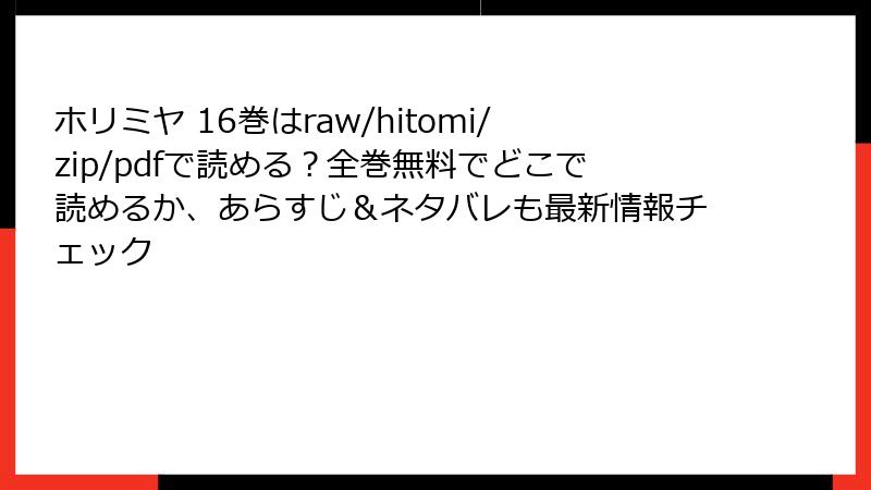 『ホリミヤ』16巻は、青春ラブコメディの集大成として、堀京子と宮村伊澄を中心としたキャラクターたちの卒業と未来を描く最終巻です。この記事では、物語の核心的なネタバレを詳細に解説し、主要なエピソードやキャラクターの結末を明らかにします。未読の方はご注意ください!以下の内容は、物語の感動的な締めくくりと追加エピソードの詳細を網羅しています。