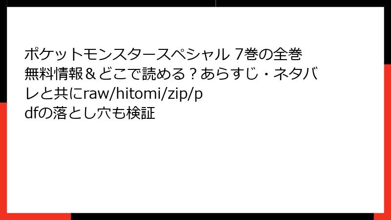 ポケットモンスタースペシャル 7巻の全巻無料情報&どこで読める?あらすじ・ネタバレと共にraw/hitomi/zip/pdfの落とし穴も検証