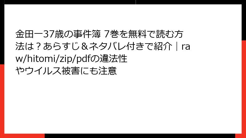 ブックライブでも『金田一37歳の事件簿 7巻』が配信されており、シリーズの他の巻と同様に試し読みからフル購入まで対応しています。講談社の公式配信サイトとして信頼性が高く、セール時に割引価格で入手できる機会が多いです。ユーザーからは「懐かしい金田一の雰囲気を楽しめた」とのレビューも見られます。