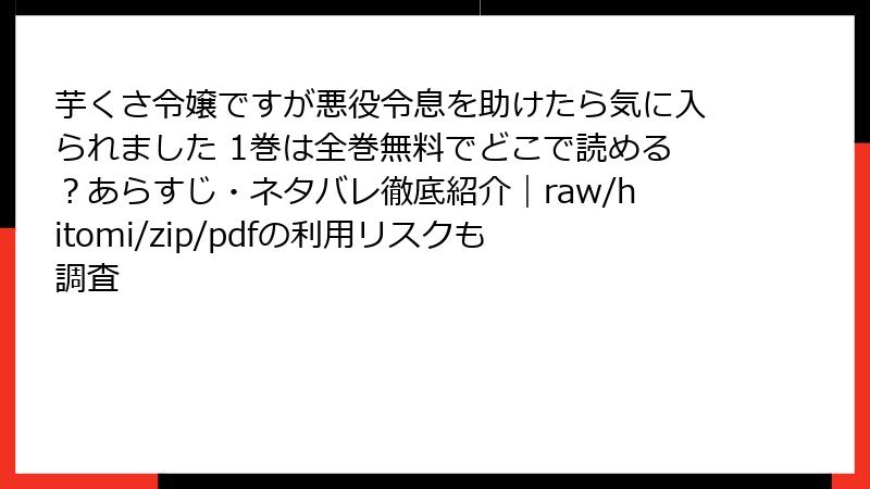 『芋くさ令嬢ですが悪役令息を助けたら気に入られました』のような魅力的な漫画を、raw、hitomi、zip、pdf、漫画バンクなどの海賊版サイトで読むのは、一見便利に見えますが、深刻なリスクを伴います。これらのサイトは著作権を侵害した違法コンテンツを提供し、利用者は法的制裁、セキュリティ脅威、経済的・倫理的損失に直面する可能性があります。2025年現在、海賊版サイトの被害額は年間数兆円規模に上り、取り締まりが強化されている状況です。以下で詳しく解説します。