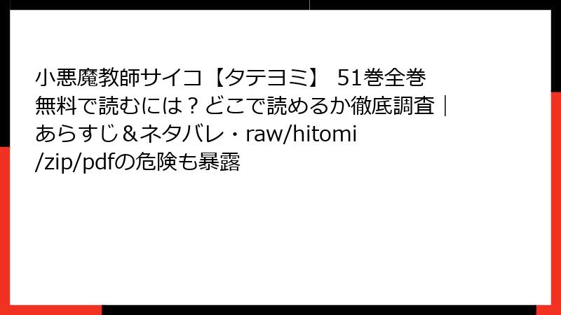 『小悪魔教師サイコ【タテヨミ】』51巻は、サイコパス教師・葛西心春の過激な「教育」がさらにエスカレートする、緊張感と衝撃に満ちたエピソードです。このブログ記事では、51巻の詳細なネタバレを、物語の流れやキャラクターの動きを中心に解説します。シリーズの核心に迫る展開が満載なので、ネタバレを気にしない方だけお読みください!