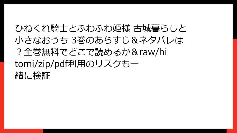 人気ファンタジー漫画『ひねくれ騎士とふわふわ姫様 古城暮らしと小さなおうち』を、raw、hitomi、zip、pdf、漫画バンクなどの海賊版サイトで読もうとするのは、魅力的に見える一方で深刻なリスクを伴います。これらのサイトは違法にスキャンされたコンテンツを提供し、無料で最新巻にアクセスできるように見せかけますが、法的問題、セキュリティの脅威、倫理的影響が大きいです。2025年現在、取り締まりが強化されており、利用者は予期せぬ被害に遭う可能性が高まっています。