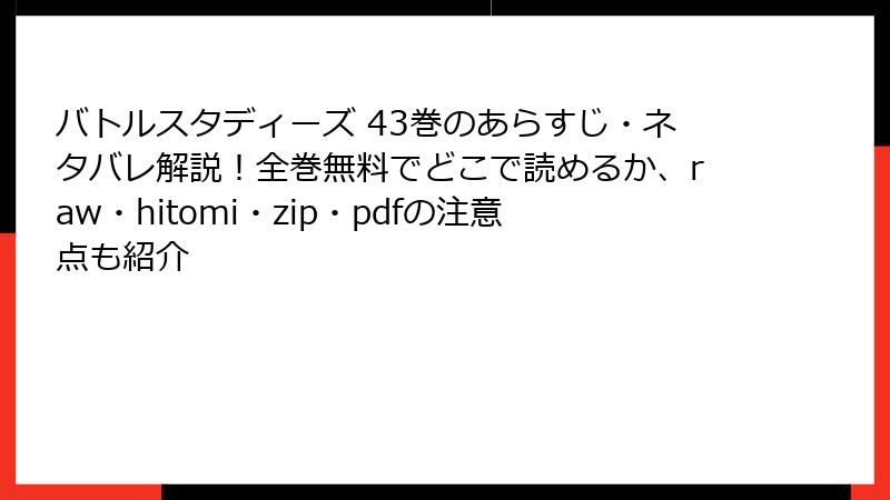 なきぼくろ先生の『バトルスタディーズ』43巻は、DL学園と花忠社の激しい試合の続きを描いた巻で、ネタバレ満載の緊張感あふれる内容です。注意: この記事は重大なネタバレを含みます。未読の方はご注意ください。主人公・狩野笑太郎のベンチからの采配が光る中、チームの「バトルスタディーズ」精神が試される展開が魅力です。