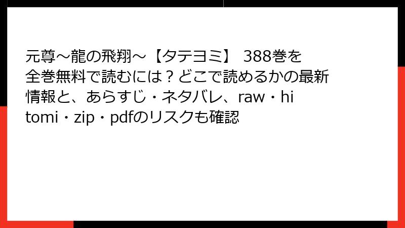 人気アクションファンタジー漫画『元尊~龍の飛翔~【タテヨミ】』の388巻は、主人公周元の成長がさらに加速する重要な転換点となる巻です。この作品は、天蚕土豆の原作小説を基に、Hu Liの脚本とDR. Dajiのダイナミックな作画で描かれる縦読み形式のフルカラー漫画で、力を奪われた王子が宿敵に立ち向かう壮大な物語です。
