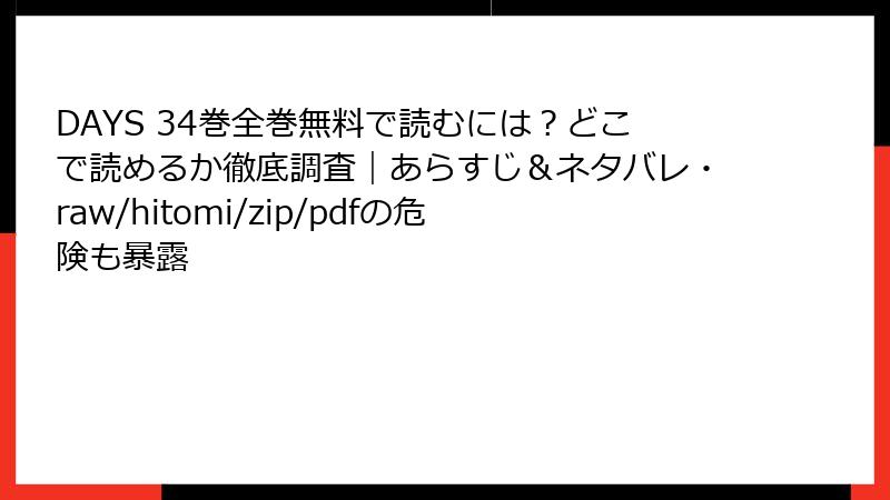 ピッコマは、待てば無料システムで人気ですが、『DAYS』の単行本配信は限定的。34巻の有料購入が可能ですが、Webtoon中心のため少年漫画の取り扱いが少ない場合があります。LINEマンガも同様にオリジナル作品多めで、講談社作品として一部配信される可能性あり。両サービスは韓国系コンテンツが強いため、確認をおすすめします。