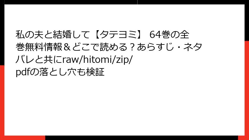 こんにちは、漫画好きのブロガーです! 今日スポットライトを当てるのは、LINEマンガで大人気のタイムスリップ復讐ストーリー『私の夫と結婚して【タテヨミ】』。この作品は、余命わずかな主人公が夫と親友の裏切りに遭い、奇跡的に10年前へ戻って復讐を誓うという、胸がざわつくラブコメディ。韓国ウェブトゥーン原作で、日本でもドラマ化されるほどのヒット作です。全68巻の長編ですが、今回は64巻のあらすじを詳しく掘り下げます。この巻は物語の後半戦、復讐の核心に迫る重要な転換点が多く、読者の心を鷲掴みにする展開満載! ネタバレ注意で進めますので、未読の方はご注意を。さあ、64巻の深淵を一緒に覗いてみましょう。