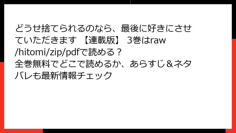 どうせ捨てられるのなら、最後に好きにさせていただきます 【連載版】 3巻はraw/hitomi/zip/pdfで読める?全巻無料でどこで読めるか、あらすじ&ネタバレも最新情報チェック