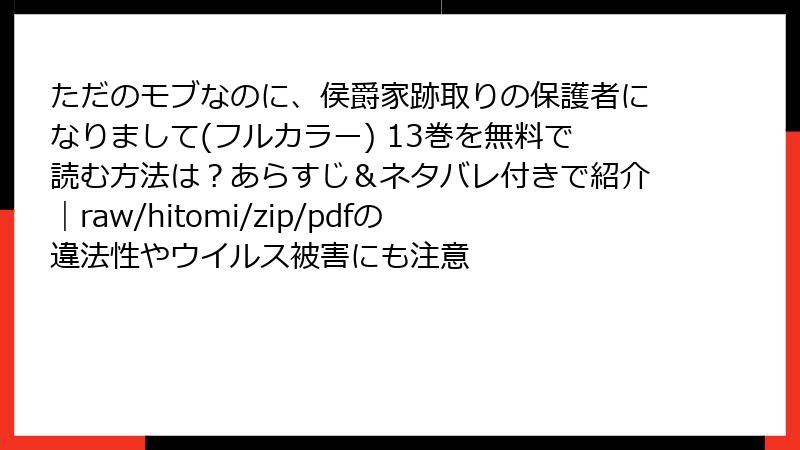 異世界転生ファンタジーロマンスの人気作『ただのモブなのに、侯爵家跡取りの保護者になりまして(フルカラー)』。13巻では、主人公の日常がさらに深みを増し、予想外の展開が読者を引き込む内容となっています。原作の乙女ゲーム世界に転生したモブキャラの主人公が、侯爵家の跡取り子供たちを保護する立場となり、波乱の人生を歩むストーリー。この巻では、家族の絆が試される試練と、心温まる成長が描かれています。以下で詳しく紐解いていきましょう。