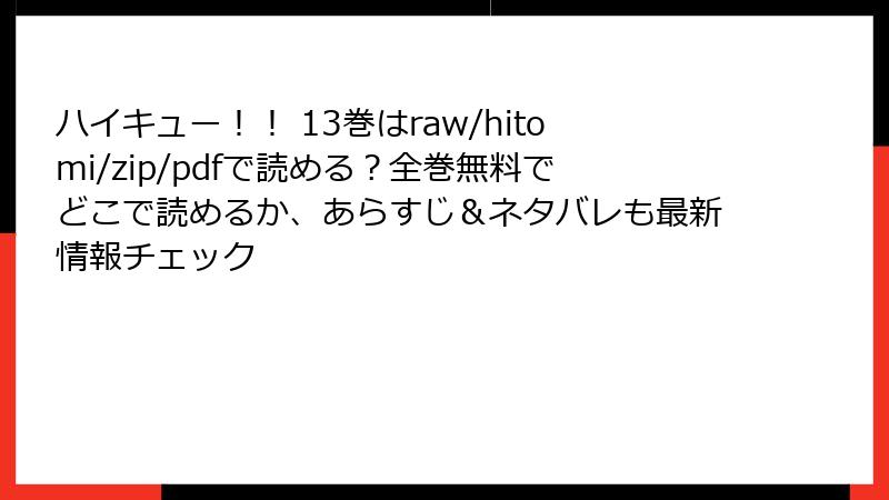 ハイキュー!! 13巻の電子書籍配信サービスガイド
