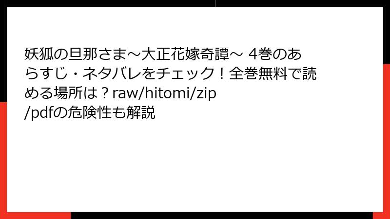 『妖狐の旦那さま~大正花嫁奇譚~』4巻は、華村灯里と九石実琴の愛と戦いがさらに深まる大正浪漫ファンタジーです。この巻では、桜の宴での妖の暴走、灯里の姉・比呂の陰謀、邪神の呪い、そして家族の絆が複雑に絡み合い、ドラマチックな展開が続きます。以下、ネタバレを含む詳細なあらすじを、物語の主要な出来事ごとに分けて解説します。未読の方はご注意ください。
