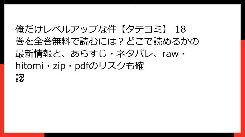 俺だけレベルアップな件【タテヨミ】 18巻を全巻無料で読むには?どこで読めるかの最新情報と、あらすじ・ネタバレ、raw・hitomi・zip・pdfのリスクも確認
