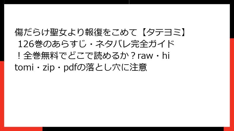 こんにちは、漫画愛好家の皆さん! 今回は、2025年も大人気の『傷だらけ聖女より報復をこめて【タテヨミ】』を、raw、hitomi、zip、pdf、漫画バンクなどの海賊版サイトで読むことのリスクについて、徹底解説します。このダークファンタジー漫画は、原作・編乃肌、漫画・SORAJIMAによる魅力的な作品で、公式プラットフォームでの購読が推奨されます。しかし、無料で読める海賊版サイトに手を出したくなる気持ちも分かります…。でも、ちょっと待って! 海賊版サイトの利用には重大なリスクが潜んでいます。この記事では、その危険性を詳しく掘り下げ、なぜ正規ルートで楽しむべきかをブログ形式で解説します。複数のセクションで、読み応えのある内容をお届けしますので、ぜひ最後までご覧ください!