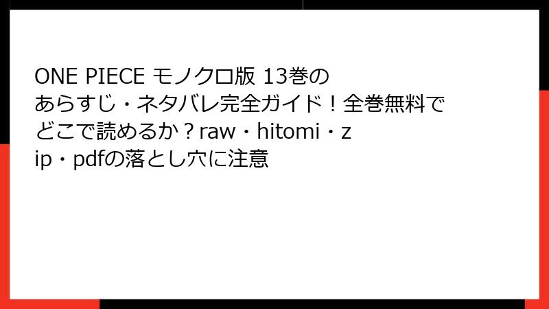 ONE PIECE モノクロ版13巻は電子書籍の利便性でいつでも再読可能。クーポンや還元を活用し、正規サービスでクリエイターを支援しましょう。配信状況は変動する可能性があるので、各アプリで最新を確認してください。