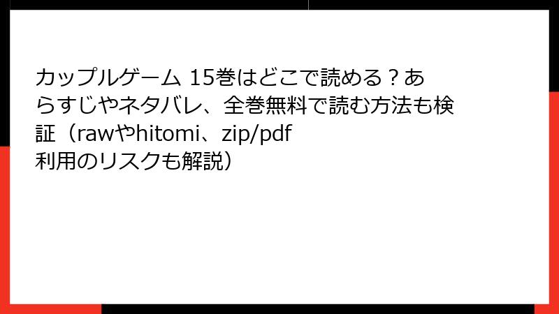 カップルゲーム 15巻はどこで読める?あらすじやネタバレ、全巻無料で読む方法も検証(rawやhitomi、zip/pdf利用のリスクも解説)