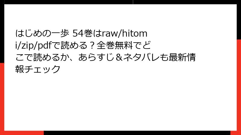 『はじめの一歩』54巻は、ブックライブ、ebookjapan、Renta!、まんが王国、コミックシーモアで主に読め、クーポンやポイントを活用してお得に楽しめます。未配信サービスは他のボクシング漫画で代用を。最新情報は各アプリで確認し、正規配信を支持してクリエイターを応援しましょう。