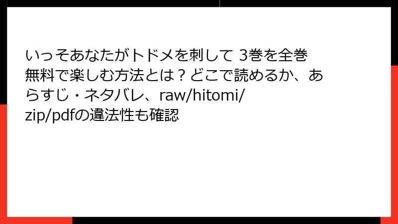 いっそあなたがトドメを刺して 3巻を全巻無料で楽しむ方法とは?どこで読めるか、あらすじ・ネタバレ、raw/hitomi/zip/pdfの違法性も確認