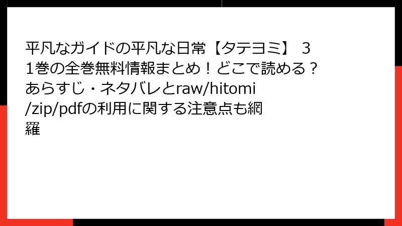 皆さん、こんにちは! 漫画レビュー担当の私です。今回は、前回のあらすじに続き、「平凡なガイドの平凡な日常【タテヨミ】」31巻の完全ネタバレ情報を、徹底的に掘り下げてお届けします。この巻は、BLロマンスの甘さとガイドバースのダークな陰謀が交錯する、まさにシリーズのターニングポイント。ネタバレを恐れぬ猛者だけが読み進めてください! もし未読なら、今すぐ目を覆ってくださいね(笑)。ここでは、キャラクターの隠された過去、キーイベントの裏側、伏線回収まで、一切の忖度なしで解説。タテヨミの美しいアートがもたらす感動を、文字で再現してみます。それでは、深淵を覗く旅へGO!