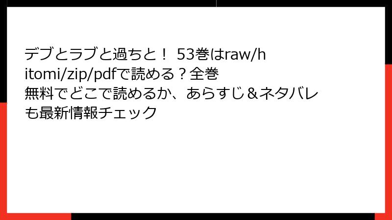 こんにちは、漫画愛好家のコミックハンターです! 今回は、ままかり先生の大人気ラブコメサスペンス『デブとラブと過ちと!』の53巻に焦点を当て、読者のレビューや口コミ、評判を徹底分析します。累計6000万DLを誇るこの作品は、主人公・幸田夢子のポジティブな生き様と恋愛・事件のドキドキ展開で、ファンを魅了し続けています。53巻は特に、恋の進展とサスペンスの加速が話題沸騰! 2025年10月時点の最新情報を基に、SNSやレビューサイトの声を集め、ブログ形式で読み応えのある内容にまとめました。ネタバレは最小限に、感想中心で進めますので、未読の方も安心してどうぞ。さっそく、