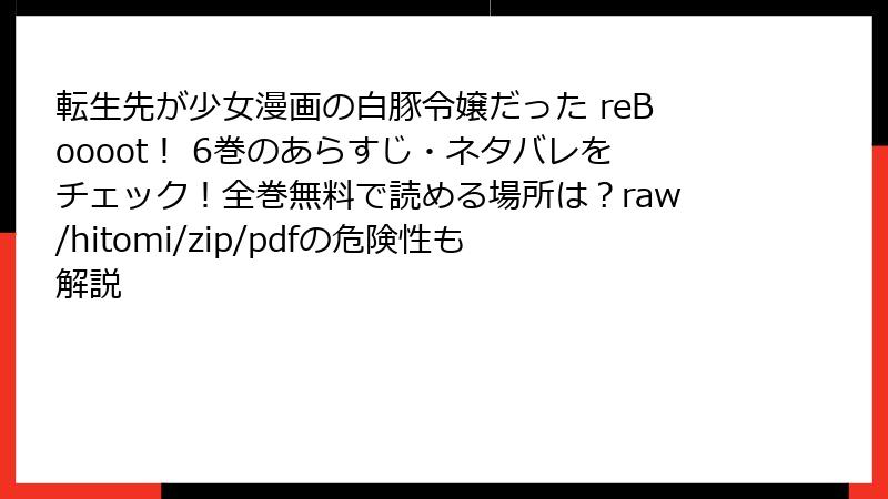 - 転生先が少女漫画の白豚令嬢だった reBoooot! 6巻 レビュー・口コミ・評判まとめ:ファンが語る魅力と賛否両論