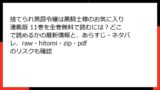 | 漫画バンク (後継: HAKARAW, MANGA ZIP) | 人気ランキングやタグ検索が充実。ほぼ毎日更新。 | 閉鎖・再開を繰り返し、法的取り締まりの標的にされやすい。 |