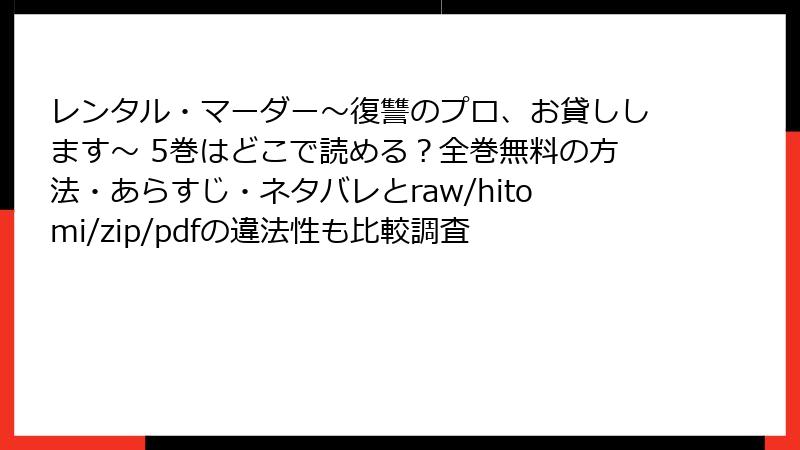 レンタル・マーダー~復讐のプロ、お貸しします~を海賊版サイトで読むリスク:raw/hitomi/zip/pdf/漫画バンクの闇を徹底解説