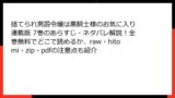 - 回避策のヒント: 正規の電子書籍サービス(例: ピッコマ、ebookjapan)を利用すれば、こうしたリスクゼロで楽しめます。