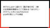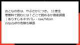 | ダウンロード違反 | ZIP/PDFなどのファイル入手。rawサイトでraw画像を保存した場合も対象。 | 2年以下の懲役または200万円以下の罰金(著作権法第119条)。 |
