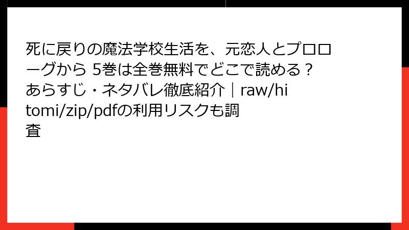 - 『死に戻りの魔法学校生活を、元恋人とプロローグから』電子書籍版の配信サービス徹底ガイド:どこで読める?2025年最新情報
