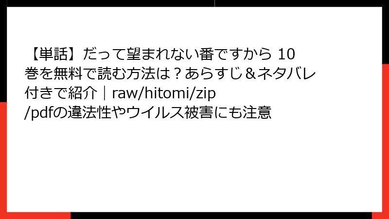 こんにちは、漫画好きの皆さん! 今日は、気軽に無料で読めそうに見える海賊版サイト(raw、hitomi、zip、pdf、漫画バンクなど)で『だって望まれない番ですから』のような人気作品を読むことのリスクについて、深掘りしてお話しします。私自身、合法的な電子書籍サービスを愛用していますが、海賊版サイトの誘惑に負けそうになる瞬間はありますよね。でも、実際には法的・セキュリティ・倫理的な落とし穴が満載。2025年現在、取り締まりも強化されており、無視できない問題です。この記事では、複数の視点からリスクを詳しく解説。未読の方は、まずは正規ルートをおすすめしますよ!