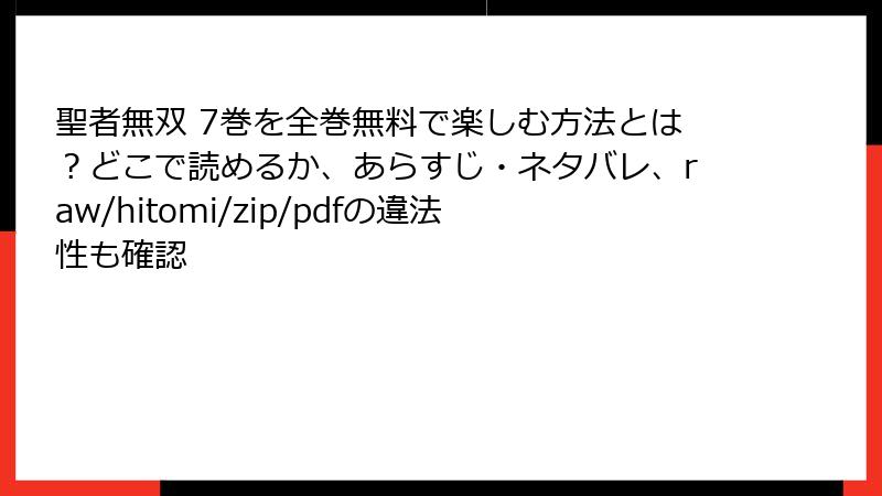 聖者無双 7巻を全巻無料で楽しむ方法とは?どこで読めるか、あらすじ・ネタバレ、raw/hitomi/zip/pdfの違法性も確認