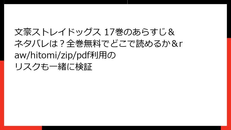 こんにちは、漫画愛好家のブロガーです! 人気作の最新巻を無料で読みたい衝動、誰しも一度は感じますよね。特に『文豪ストレイドッグス』のような魅力的なシリーズを、raw、hitomi、zip、pdf、漫画バンクなどの海賊版サイトで手軽にアクセスできるのは魅力的。でも、待ってください。2025年現在、これらのサイトは法的・セキュリティの落とし穴だらけ。軽い気持ちで訪れると、後悔の連続になる可能性大です。このブログ記事では、そんなリスクを多角的に深掘り。読み応えある内容で、なぜ正規ルートを選ぶべきかを解説します。未読のあなた、参考にどうぞ!