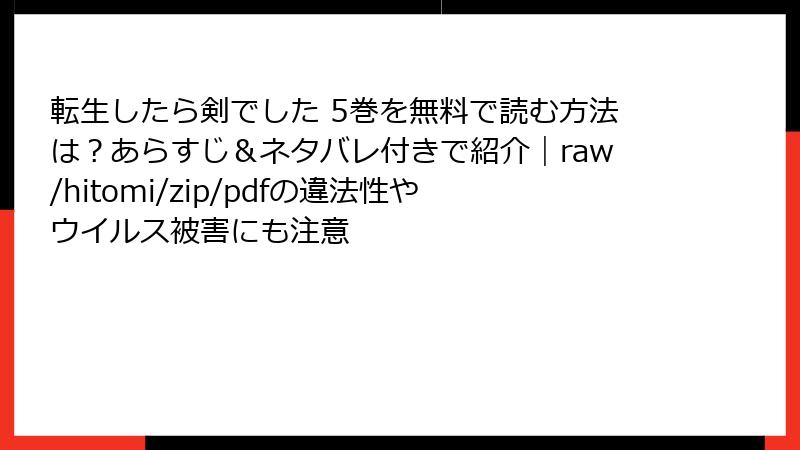 転生したら剣でした 5巻を無料で読む方法は?あらすじ&ネタバレ付きで紹介|raw/hitomi/zip/pdfの違法性やウイルス被害にも注意