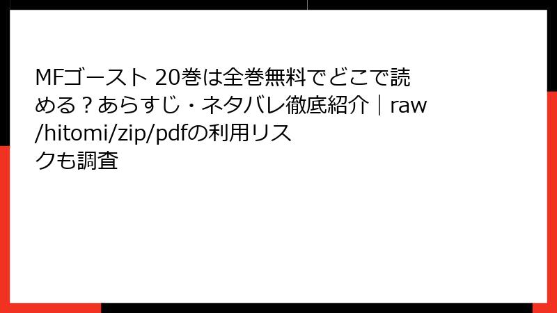 こんにちは、漫画好きの皆さん! しげの秀一先生の傑作『MFゴースト』、20巻が発売されてからというもの、電子書籍で読み進めたいという声が続出中ですよね。自動運転時代に蘇る公道レースの熱きドラマを、いつでもどこでも楽しめる電子版は便利! 今回は、指定された人気サービス――コミックシーモア、ブックライブ(BookLive)、まんが王国、ebookjapan、Renta!、めちゃコミック(めちゃコミ)、ピッコマ、LINEマンガ――を中心に、20巻を含む電子書籍の配信状況を詳しく調査。2025年10月時点の情報に基づき、試し読みのしやすさやお得ポイントも交えてブログ風にまとめます。紙版派の方も、電子版の魅力にハマるかも? それでは、さっそくチェックしていきましょう!