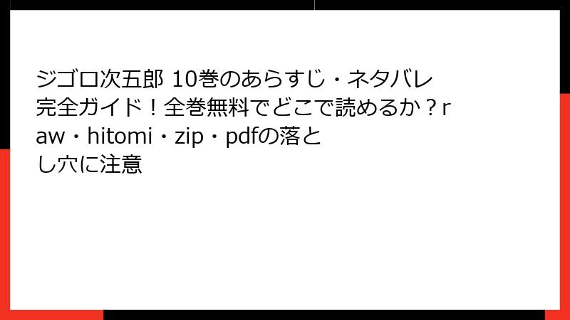こんにちは、漫画好きの皆さん! 今日は、誰もが一度は気になってしまう『ジゴロ次五郎』のような魅力的な作品を、海賊版サイトで読もうとする誘惑について、真剣に語ります。raw、hitomi、zip、pdf、漫画バンクなどのサイトは、無料で手軽に楽しめそうに見えますが、実は恐ろしいリスクが潜んでいます。この記事では、そんな海賊版サイトの利用がもたらす法的・セキュリティ・倫理的な落とし穴を、詳しく掘り下げます。安全に漫画を楽しむためのヒントも交えつつ、読み応えのある内容でお届けします。未読の方は、まずは正規ルートをおすすめしますよ!