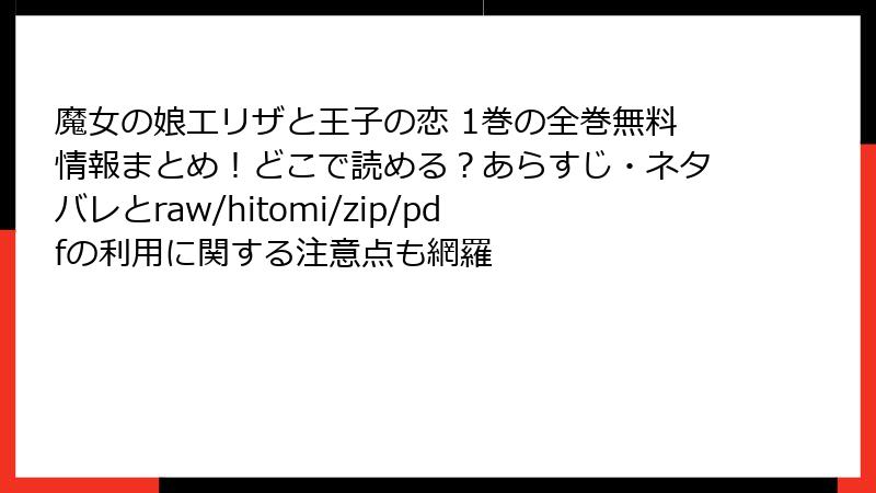 こんにちは、漫画好きの皆さん! 今日も新しい作品にワクワクしながらネットサーフィン中ですか? でも、ちょっと待ってください。『魔女の娘エリザと王子の恋』のような魅力的なファンタジー恋愛漫画を、rawやhitomi、zip、PDF、漫画バンクなどの海賊版サイトで無料で読もうとしていませんか? 確かに一見お得そうですが、実はこれらのサイトには深刻なリスクが潜んでいます。今回は、そんな海賊版サイトの危険性を、サイバーセキュリティの観点から徹底的に掘り下げます。法的トラブルからウイルス感染、個人情報漏洩まで、具体的な事例を交えながら解説。読み終わったら、正規ルートで漫画を楽しむ重要性がきっと実感できるはずです!