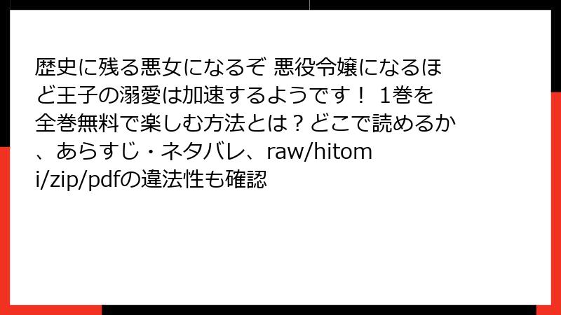 海賊版サイトで漫画を読むリスク:『歴史に残る悪女になるぞ 悪役令嬢になるほど王子の溺愛は加速するようです!』を例に徹底解説