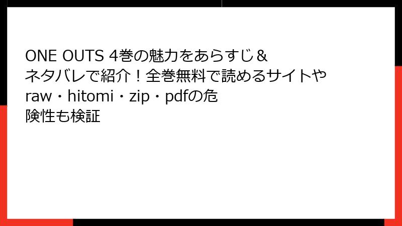 『ONE OUTS』の頭脳戦のように、賢くリスクを回避しましょう。海賊版の誘惑に負けず、正規ルートで渡久地東亜の逆転劇を堪能してください。あなたの選択が、漫画業界の未来を支えます! コメントで安全な読書体験をシェアしていただけると嬉しいです。