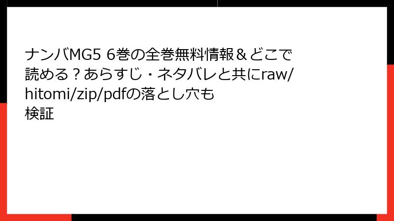 ナンバMG5 6巻の全巻無料情報&どこで読める?あらすじ・ネタバレと共にraw/hitomi/zip/pdfの落とし穴も検証