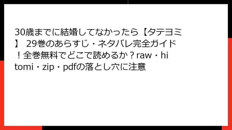 30歳までに結婚してなかったら【タテヨミ】 29巻のあらすじ・ネタバレ完全ガイド!全巻無料でどこで読めるか?raw・hitomi・zip・pdfの落とし穴に注意