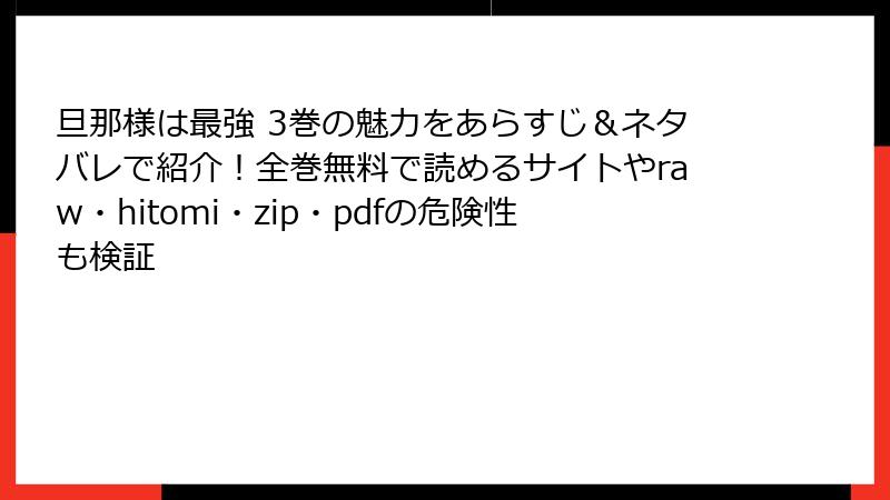 こんにちは、漫画を愛するブロガーのみなさん! 今回は、とりよし先生の人気BL漫画『旦那様は最強』を、raw、hitomi、zip、pdf、漫画バンクなどの海賊版サイトで読むことの危険性について、詳しくお話しします。この作品は、異世界ファンタジーと濃厚なラブストーリーが魅力の傑作ですが、海賊版サイトで読むと、さまざまなリスクが伴います。法的問題からデバイスへの被害、さらには倫理的な側面まで、知っておくべきポイントをブログ形式で解説。読み応えのある内容で、なぜ正規の方法で楽しむべきかを一緒に考えましょう!