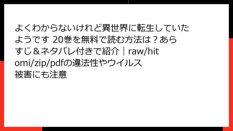 よくわからないけれど異世界に転生していたようです 20巻を無料で読む方法は?あらすじ&ネタバレ付きで紹介|raw/hitomi/zip/pdfの違法性やウイルス被害にも注意
