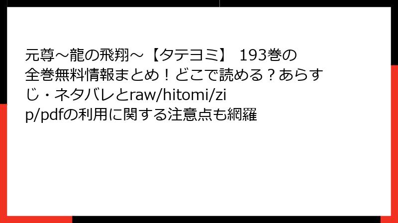 こんにちは、漫画好きの安全読書ガイドブロガーです! 今日は、ファンタジーウェブトゥーン『元尊~龍の飛翔~【タテヨミ】』のような魅力的な作品を、raw、hitomi、zip、pdf、漫画バンクなどの海賊版サイトで読むことのリスクについて、徹底的に掘り下げてお話しします。2025年10月現在、無料で最新巻にアクセスできるのは魅力的ですが、これらのサイトは法的・セキュリティ・経済的な落とし穴だらけ。利用者の被害事例が急増しており、軽い気持ちで訪れると取り返しのつかない事態に陥る可能性大です。