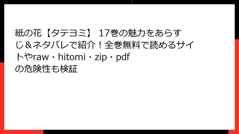 海賊版サイトで漫画を読むリスク:『紙の花【タテヨミ】』をraw/hitomi/zip/pdf/漫画バンクで楽しむ危険性