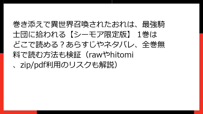 『巻き添えで異世界召喚されたおれは、最強騎士団に拾われる【シーモア限定版】1巻』電子書籍版の配信状況:主要サービスでどこまで読める?