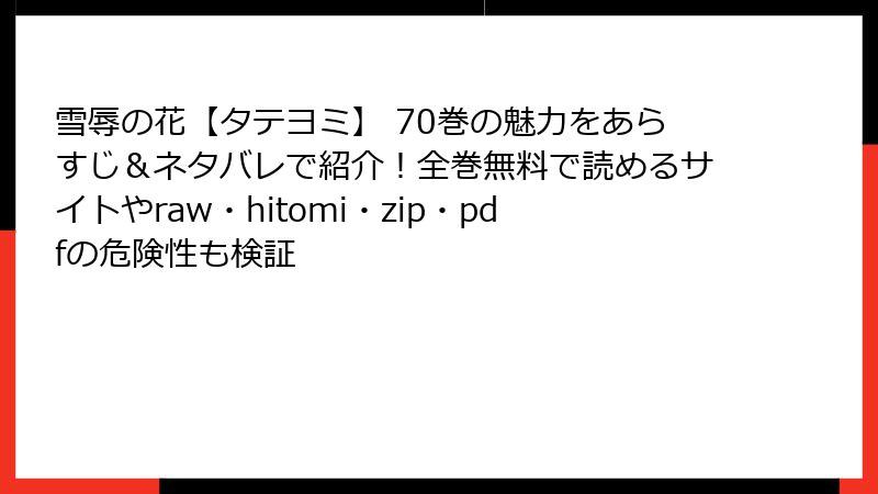 raw/hitomi/zip/pdf/漫画バンクなどの海賊版サイトは、法的罰則、セキュリティ脅威、倫理的後悔のトリプルパンチ。無料の魅力に負けず、正規電子書籍(例: タテヨミ対応アプリ)を選べば、高品質でクリエイター支援も。『雪辱の花』のように、心揺さぶる作品は、正しい方法で味わうのが一番。リスクを避け、豊かな読書ライフを! 皆さんの体験談はコメントで(ただし海賊版推奨NG)。次回は安全アプリレビューでお届けします♪