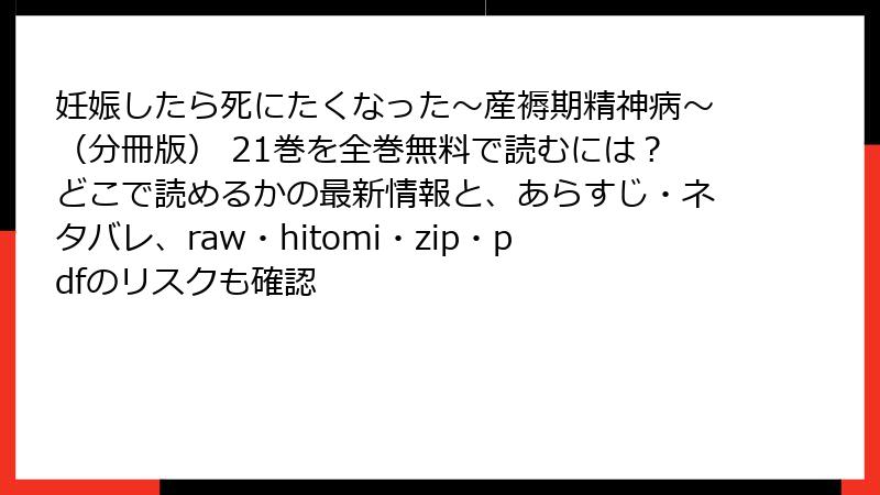 妊娠したら死にたくなった~産褥期精神病~(分冊版) 21巻を全巻無料で読むには?どこで読めるかの最新情報と、あらすじ・ネタバレ、raw・hitomi・zip・pdfのリスクも確認