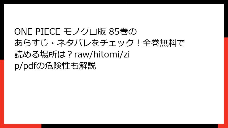 ONE PIECE モノクロ版 85巻:衝撃のネタバレと物語の核心