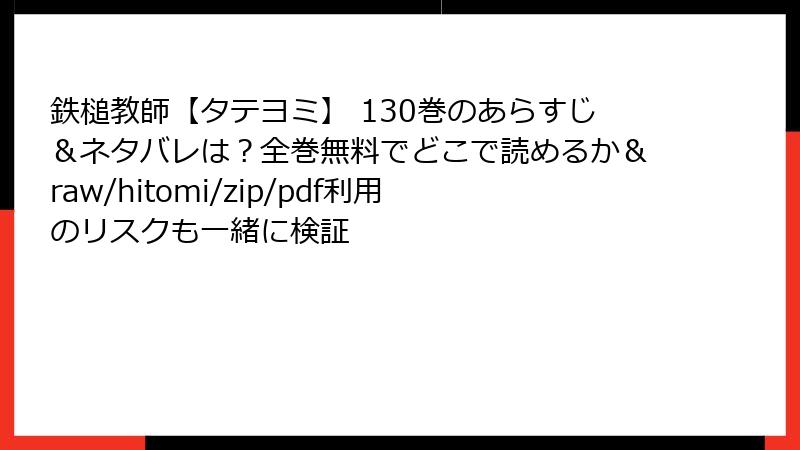 - 鉄槌教師【タテヨミ】 130巻:衝撃のネタバレと物語の核心