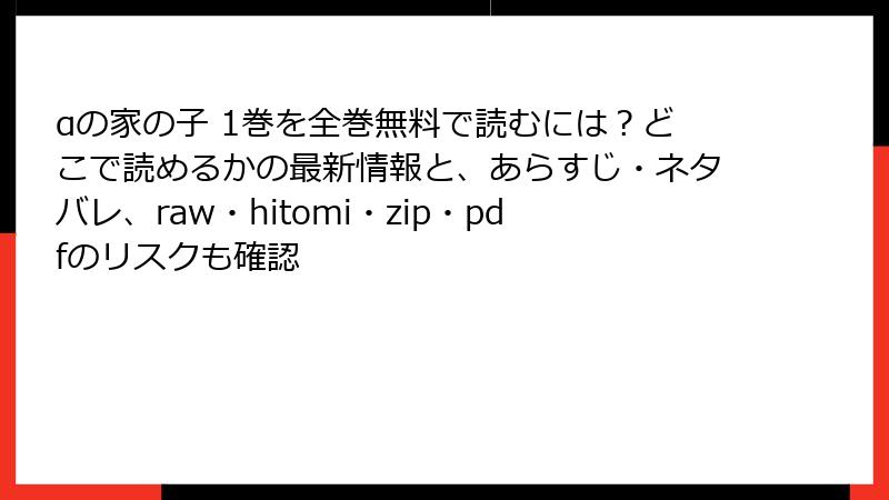 海賊版の誘惑は強いですが、リスクを天秤にかければ正規ルートが断然おすすめ。『αの家の子』の温かな世界を、安心して味わいましょう! あなたは海賊版経験ありますか? コメントで安全な読み方シェアしてくださいね。